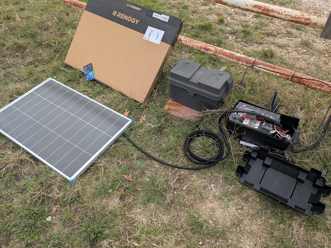 Today is a cold and mostly cloudy Sunday. It took less than 30 minutes to unbox the panel, cut the connectors off one end of the cabel and connect it up to the charge controller. The controller was “stuck” in the E01 state, so I disconnected the battery and the solar panel to clear the error. When I reconnected it, the solar panel was outputting 12.9 volts at 1.4 amps, which is about 18 watts. It was enough to power up the AP and camera. Even laying flat on the ground in cloudy weather, this panel is providing almost as much as the old panel is even capable of.